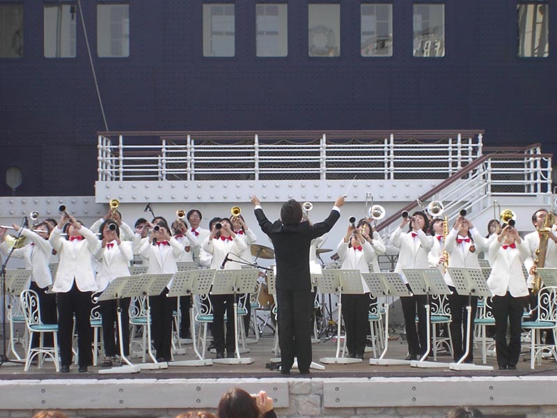 演奏した場所はディズニーシーのあの大きな船の前です。